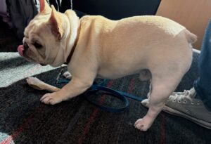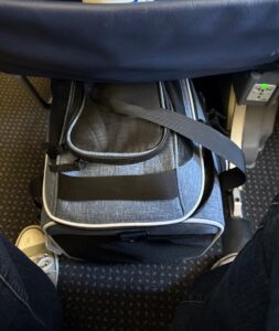 While you’re getting the health certificate, ask you vet about some prescription relief to help your furkid sleep or at least doze on the flight. My vet recommended a low dose of Trazadone since we had two short flights. But for longer hops, or if your furkid is more energetic, the vet might recommend a CBD chew which will knock them out for 24 hours. Be sure to talk with your vet about specifics for your flight duration, your four-legged’s personality, and any concerns you have about side effects when asking for medication.
